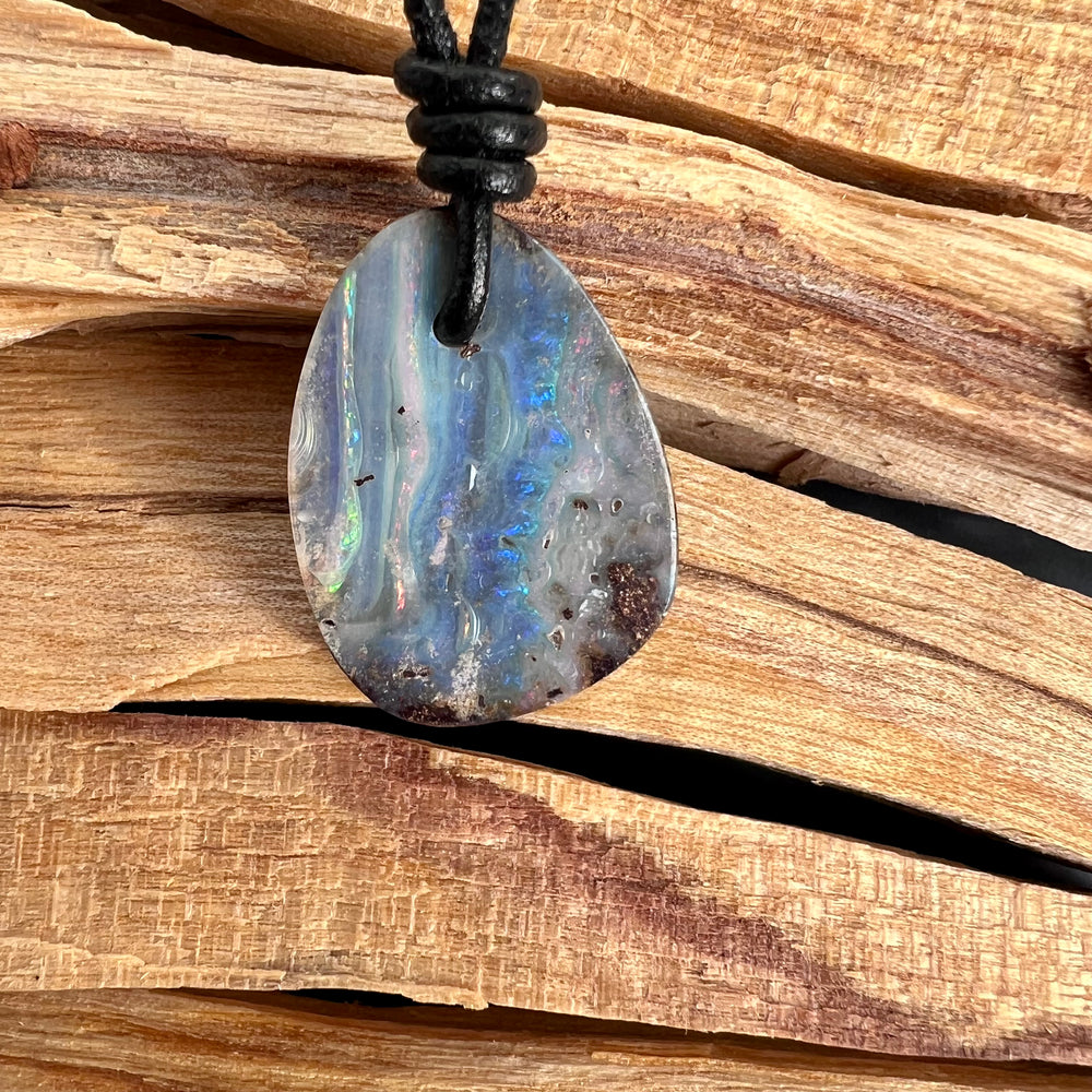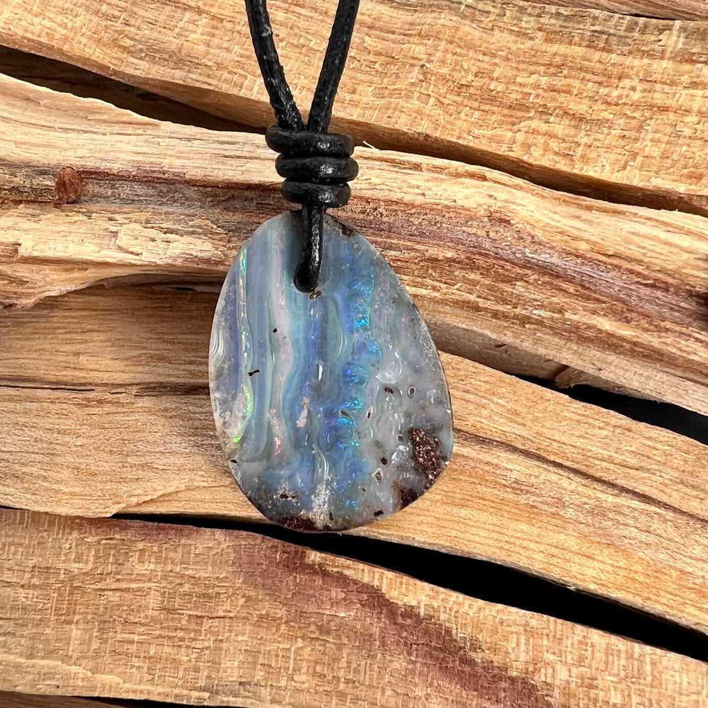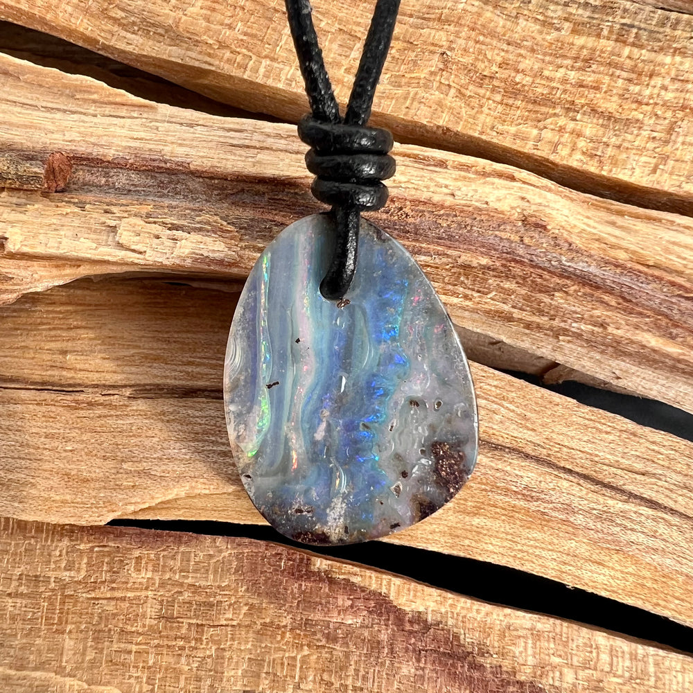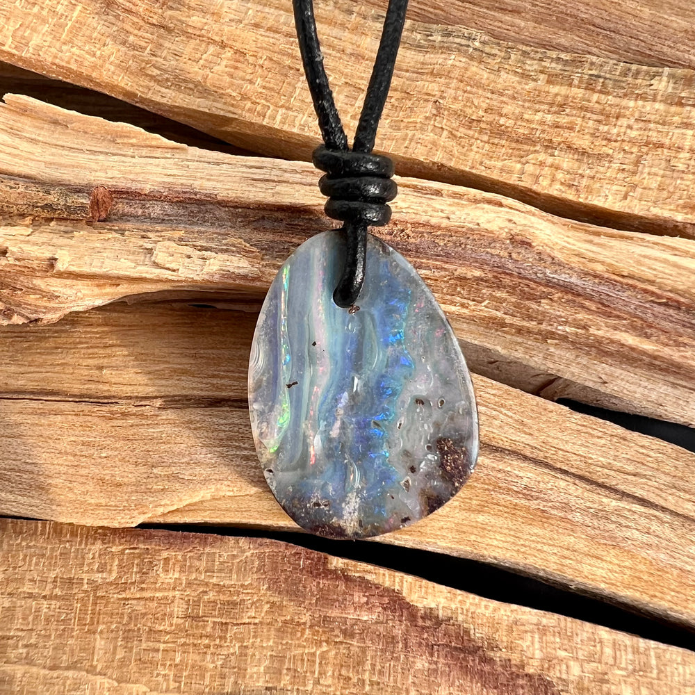 Entdecke die natürliche Schönheit des Boulder Opals mit diesem einzigartigen Kettenanhänger.