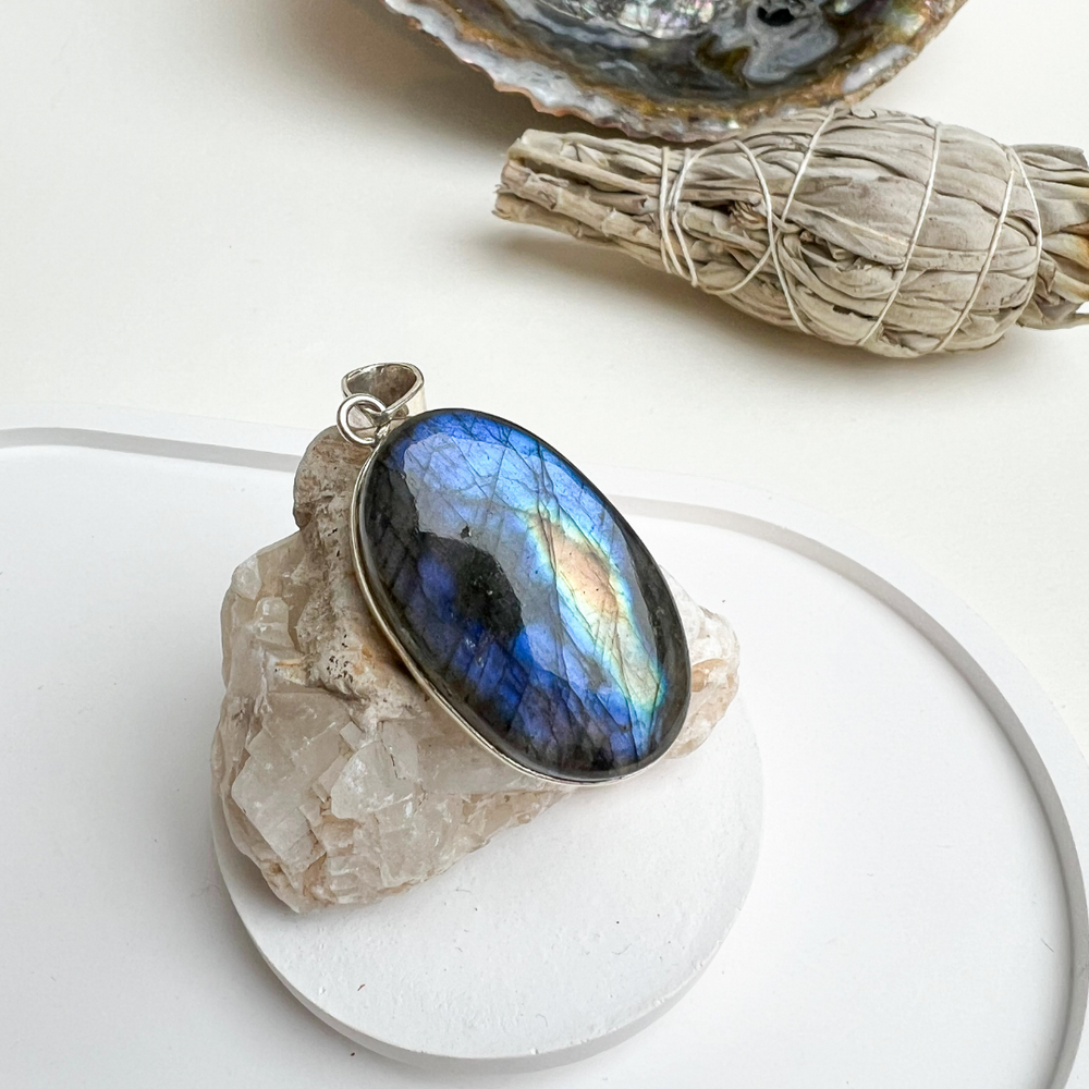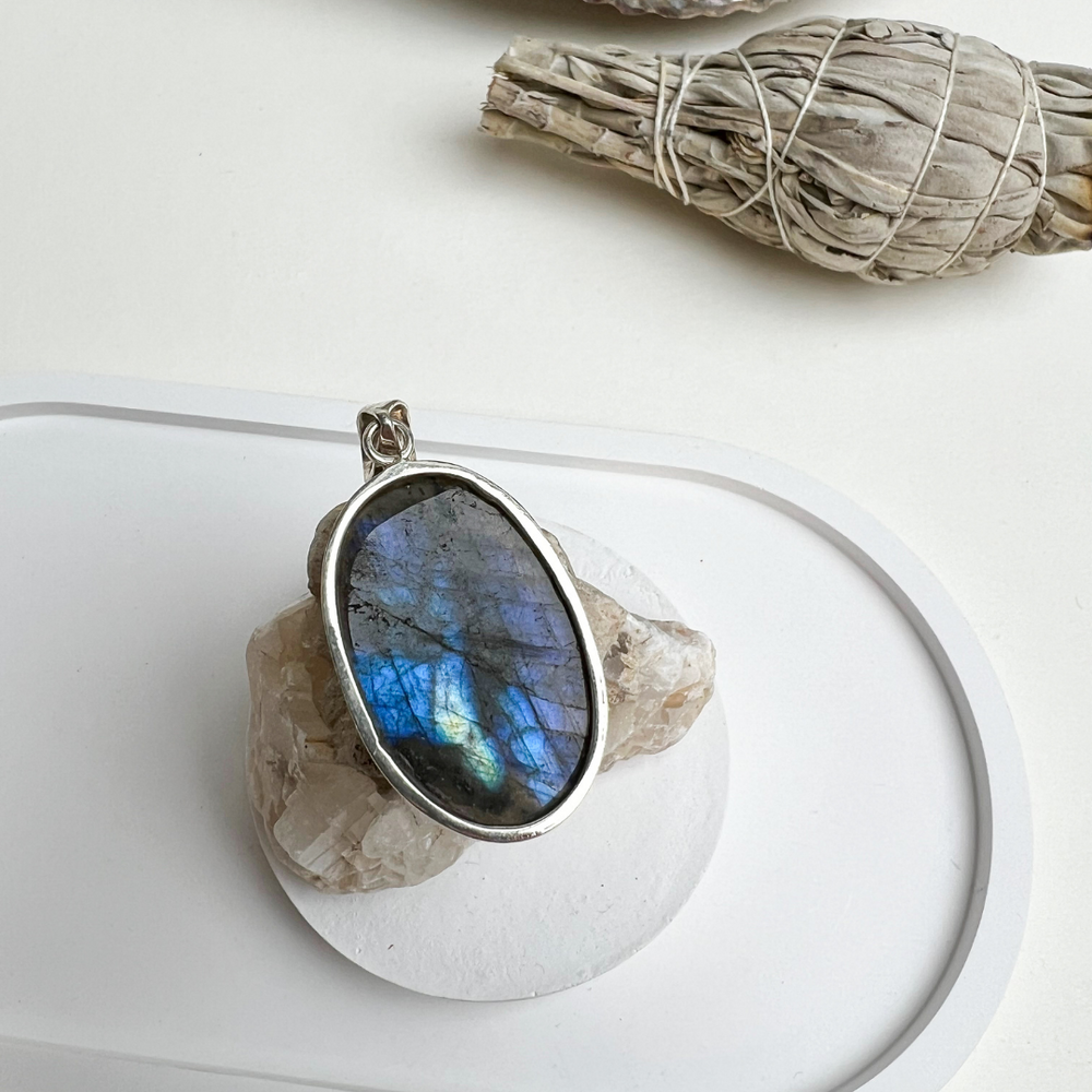 Trage diesen Anhänger mit Stolz und lass dich von seiner magischen Präsenz inspirieren. Erwecke deine innere Kreativität und entdecke die transformative Kraft des Labradorits, während du sein schillerndes Geheimnis jeden Tag neu erkundest.