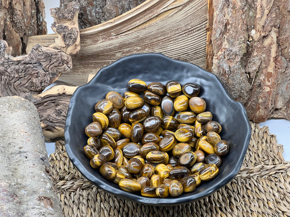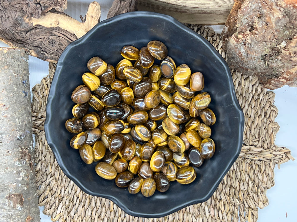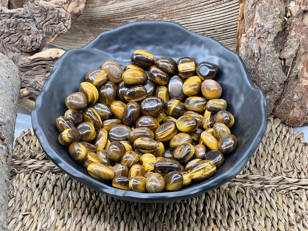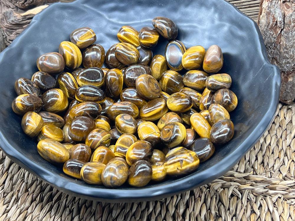 Jeder Trommelstein ist glatt poliert, liegt angenehm in der Hand und zeigt wunderschöne Schattierungen von Gold über Braun bis hin zu sanftem Rot.